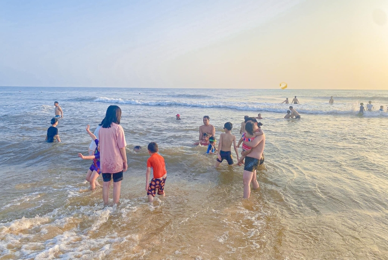 Khi mặt trời đã lên cao, cả mặt biển mênh mông những con sóng màu bạc lấp lánh. Để rồi khi chiều tà, ta lại được chiêm ngưỡng một bức tranh hoàng hôn biển tuyệt đẹp – món quà vô giá đến từ mẹ thiên nhiên.