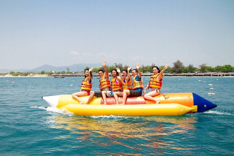 Hoặc có thể tham gia vào các trò chơi cảm giác mạnh như dù bay, moto nước, phao chuối, và bạn có thể tự tổ chức các trò chơi trên biển như bóng chuyền, bóng rổ, kéo co,….