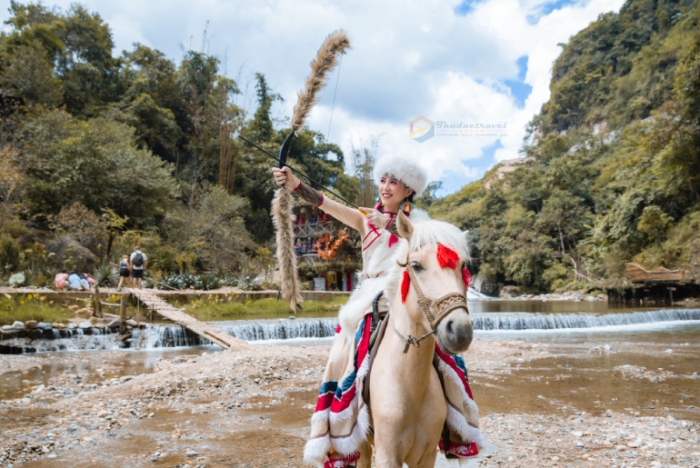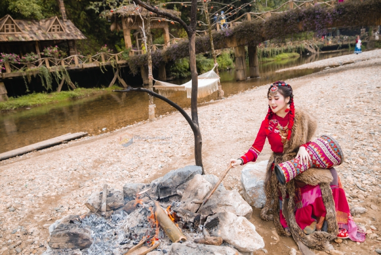 Cả một dòng thác trắng xóa, chảy xiết với âm thanh róc rách. Ở đây có khá nhiều thứ hay ho cho bạn khám phá. Những chiếc cối xay nước khổng lồ, chiếc cầu tre chênh vênh trên dòng thác cuốn, những chiếc du quay bằng gỗ, những căn nhà tranh mộc mạc,… khiến bạn không lỡ rời đi.