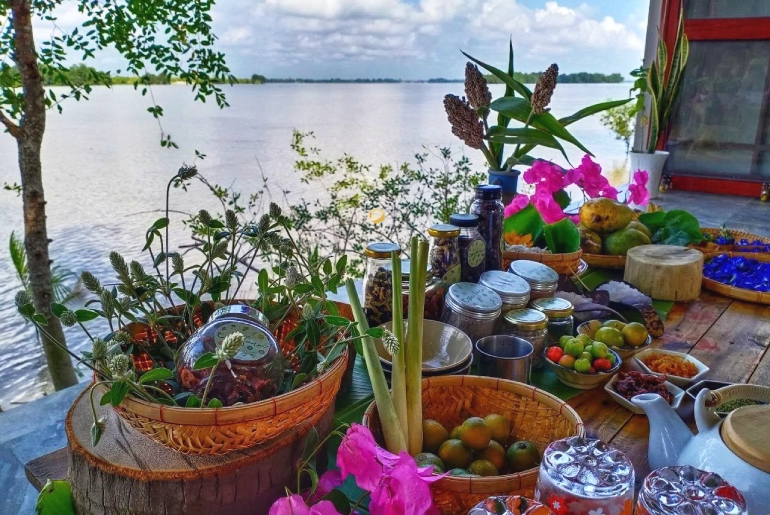 Đi dạo dưới những tán lá vườn cây trĩu quả thơm lừng trái chín, du khách sẽ vô cùng thích thú khi thấy những trái sầu riêng đang đong đưa trên cành, những hàng chôm chôm, nhãn thẳng tắp với tán xòe rộng đang trĩu quả, cùng những hàng măng cụt nghiêng mình soi bóng. Đến đây sự mệt mỏi dường như tan biến bởi không khí mát mẻ, gió sông nhè nhẹ, bóng cây râm mát tạo cảm giác thư thái dễ chịu.