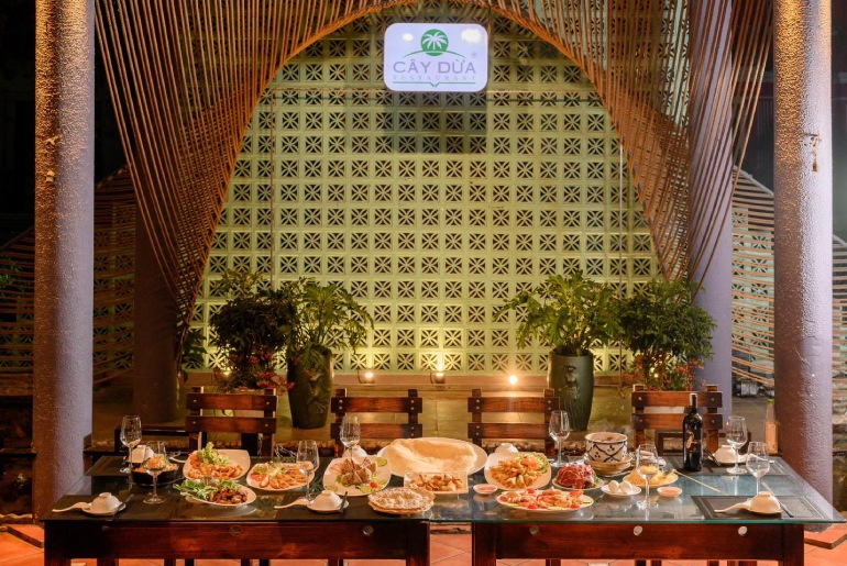 Nhà hàng Cây Dừa nổi tiếng với các món ăn truyền thống Việt Nam và hải sản tươi sống. Không gian quán rộng rãi, gần gũi với thiên nhiên nên rất thích hợp cho những bữa ăn gia đình hoặc đoàn khách du lịch.