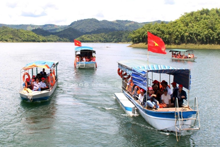 14h00: Đoàn tiếp tục TRẢI NGHIỆM NGỒI THUYỀN HỒ TÀ ĐÙNG Quý khách sẽ cảm nhận sự bình lặng, trong lành và thoải mái khi ngồi thuyền len lỏi qua những hòn đảo nhỏ nhấp nhô giữa dòng. Tận hưởng khung cảnh núi rừng hoang sơ đậm chất thiên nhiên, chưa có bàn tay con người khai phá.